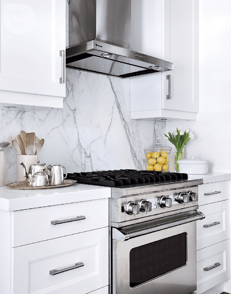 The material that is used for a backsplash usually matches that of the countertop, creating luxurious flowing feel. The backsplash is in the direct line of vision and a gorgeous slab of stone does wonders to the decorative value of the kitchen. It creates bold look with that unbroken plain that is nearly essential to both modern and contemporary kitchens. Marble or veiny backsplash creates a beautiful backdrop for the kitchen that is perfect for open concept spaces. Additionally, there are no grout lines to take care of, so cleaning is a breeze, just wipe it down, and it will last much longer than any tile would. And, c’mon, it’s plain gorgeous. The question is, would it be right for you?