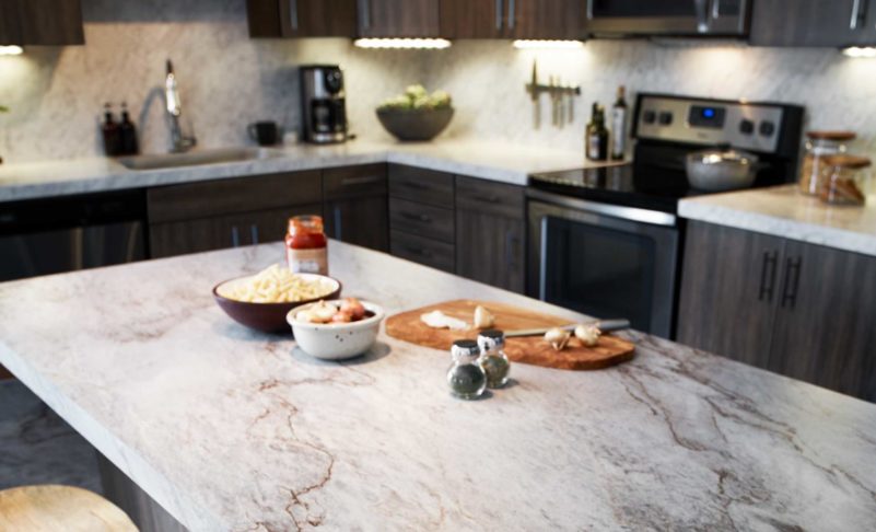 Laminate countertops come in variety of colours and textures, and some even look good 😉