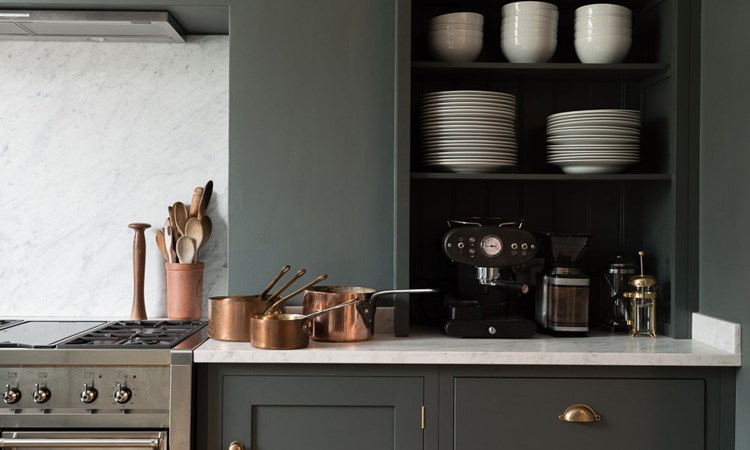 Don’t be afraid of mixing different textures! Here you can go a little eclectic without overwhealming the space. Add a nice backplate for the range, add different wood colors/species, add shiny accents, it will all work. Try to limit it to 3 though, say: wood/copper/stone. Possibilities are endless!