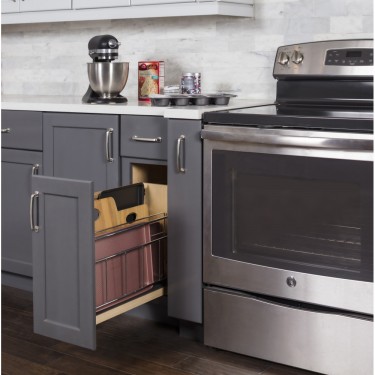 Those are practically a standard for kitchen nowadays. Nobody likes a trash can on the floor, no matter how pretty or polished it is. There are top and bottom mounted options, wood and metal, double and single and even a recycling center (with 4 way partition). No matter which option you are going with, the placement is the key here. Make sure that your trash pull out is either right next to the sink (not under it) or very close. Ideally, the trashcan would be placed somewhere along the work triangle between your sink and your stove.