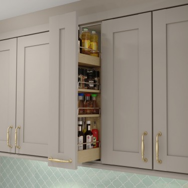 Those are your standard spice pull outs that pull out and hold spices… start at 3″ wide and can be hidden behind a filler, maybe a little column even! One thing to keep in mind, if you don’t want to put hardware in your filler or column, look for a non-soft close option and some push to open hardware. Makes for a cool cooking trick (smack the column to get to oregano)